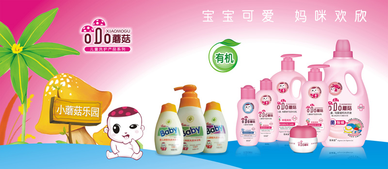 小蘑菇--品牌標語:小蘑菇沐浴露,寶寶可愛,媽咪歡欣