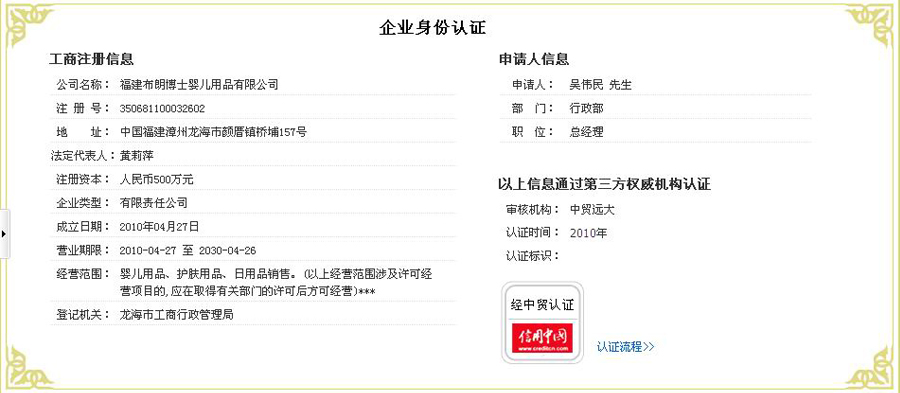 公司名稱:福建布朗博士嬰兒用品有限公司