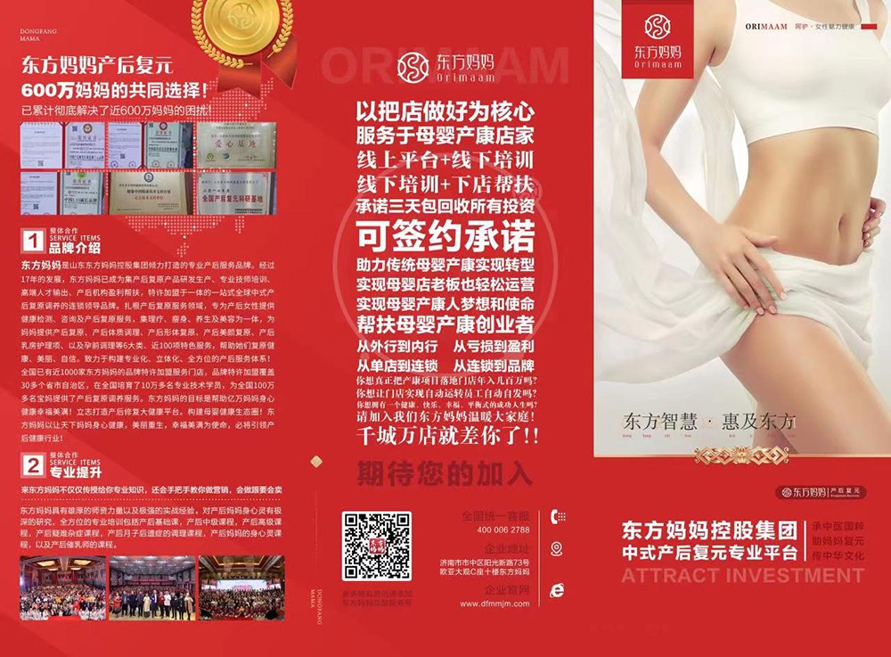 品牌名稱:東方媽媽 主營產(chǎn)品:東方媽媽產(chǎn)后復元中心 品牌特色:正本清源 蝶變新生