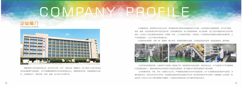 福建安琪兒衛(wèi)生用品有限公司創(chuàng)辦于2014年,位于“品牌之都”福建晉江,是一家專門從事衛(wèi)生用品系列極其配套產品的研發(fā)、生產和銷售的高新技術衛(wèi)生護理用品企業(yè)。其秉承綠色環(huán)保、節(jié)能減排的社會責任,為消費者生產、提供優(yōu)質、環(huán)保、健康、貼心的衛(wèi)生護理產品。