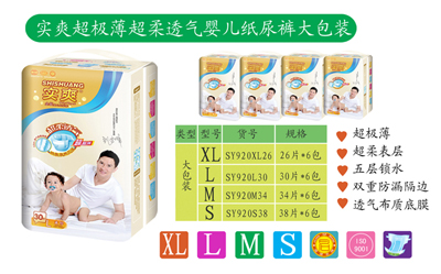 實爽超極薄超柔透氣嬰兒紙尿褲是福建天樂衛(wèi)生用品有限公司的主打產品,福建天樂衛(wèi)生用品有限公司始終認為,品質是給廣大客戶的zui好承諾,所以,福建天樂衛(wèi)生用品有限公司堅持以質量為中心,全心全意為客戶服務,實爽超極薄超柔透氣嬰兒紙尿褲質量上乘,品質保證,現面向全國各地空白區(qū)域招商,歡迎各地行業(yè)人士前來咨詢,福建天樂衛(wèi)生用品有限公司真誠為您服務!