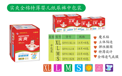 實爽全棉特薄嬰兒紙尿褲是福建天樂衛(wèi)生用品有限公司的主打產(chǎn)品,福建天樂衛(wèi)生用品有限公司始終認為,品質(zhì)是給廣大客戶的zui好承諾,所以,福建天樂衛(wèi)生用品有限公司堅持以質(zhì)量為中心,全心全意為客戶服務(wù),實爽全棉特薄嬰兒紙尿褲質(zhì)量上乘,品質(zhì)保證,現(xiàn)面向全國各地空白區(qū)域招商,歡迎各地行業(yè)人士前來咨詢,福建天樂衛(wèi)生用品有限公司真誠為您服務(wù)!