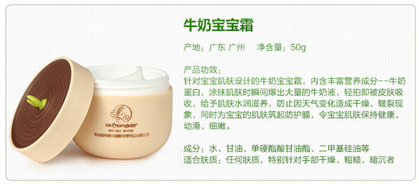 香港媽咪寶貝牛奶寶寶霜是母嬰市場(chǎng)新款護(hù)膚品,植物萃取,獨(dú)家專利72小時(shí)長(zhǎng)效護(hù)膚,讓肌膚體驗(yàn)“爆奶”快感,使寶寶肌膚水潤(rùn)柔滑,一經(jīng)推出飽受贊譽(yù)。