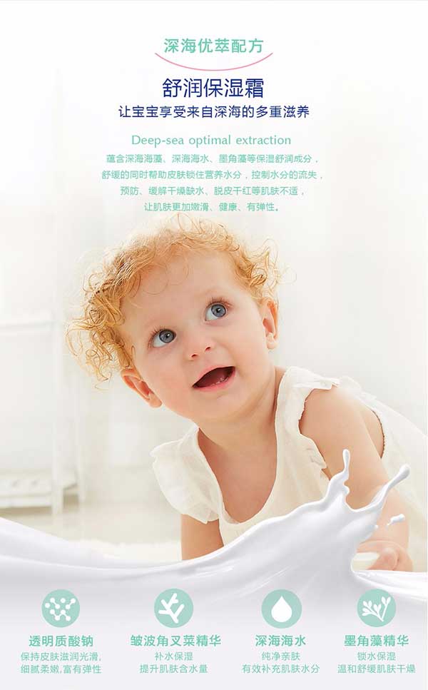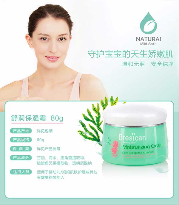 Bresican貝施康舒潤(rùn)保濕霜是 “深海優(yōu)萃”系列的滋養(yǎng)產(chǎn)品,根據(jù)嬰兒特殊肌膚PH特點(diǎn)研制,從深海中萃取自然純凈成分,配方做到純正安全,讓媽媽心安!