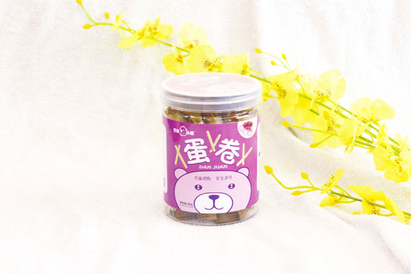 艾比小熊蛋卷系列共包含5種口味,紫薯、椰奶、香蕉、海苔、草莓;精選面粉,含礦物質(zhì)、無(wú)機(jī)鹽、蛋白質(zhì),加入雞蛋液、各種果蔬汁、奶汁、海苔碎片等,經(jīng)成糊、成卷、涂抹植物油烤焙而得,蛋卷色澤金黃偏向其中所加