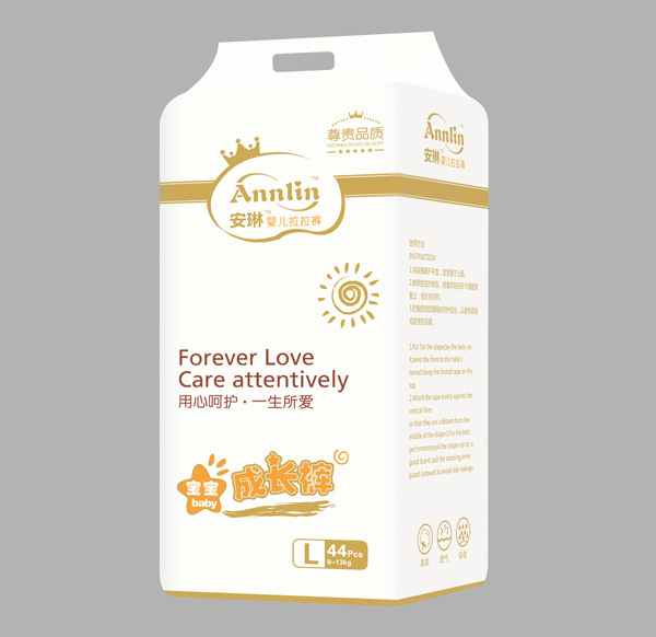 安琳嬰兒拉拉褲白金版,親膚羽柔,超強(qiáng)鎖水,人性化設(shè)計(jì),清爽透氣,包裝升級,整體以清雅白為基調(diào),與產(chǎn)品羽柔特質(zhì)相映襯,中英文標(biāo)語“用心呵護(hù)一生所愛”鑲嵌正中,高端大氣,陳列于母嬰店或商超回頭率高!
