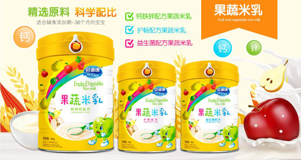 貝迪康果蔬米乳有鈣鐵鋅、益生菌以及護(hù)暢三大配方,精選天然優(yōu)質(zhì)大米為主要原料,自源頭確保產(chǎn)品的高品質(zhì),天然果蔬萃取其中,更科學(xué)配比寶寶輔食階段所需的多重營(yíng)養(yǎng)成分,采用先進(jìn)的酶解工藝精制而成,粉質(zhì)更細(xì)膩,營(yíng)養(yǎng)成分分布更均勻,同時(shí)不添加任何香精、色素、防腐劑等成分,安全健康,營(yíng)養(yǎng)豐富,為寶寶輔食期提供更全面均衡的營(yíng)養(yǎng)呵護(hù)!