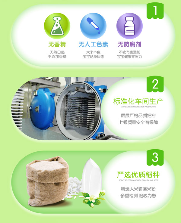 1.精選優(yōu)質的綠色大米為原料,營養(yǎng)健康;