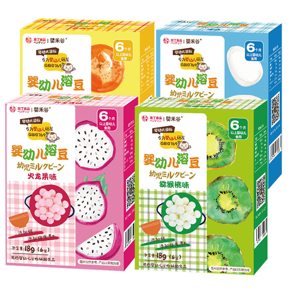 本丁嬰幼兒溶豆推出了原味、香橙味、獼猴桃味、火龍果味四種不同的單品,滿足不同的口感需求,同時(shí),本丁嬰幼兒溶豆還擁有可愛(ài)的包裝設(shè)計(jì),讓你只一眼就愛(ài)上,相伴童年好時(shí)光!