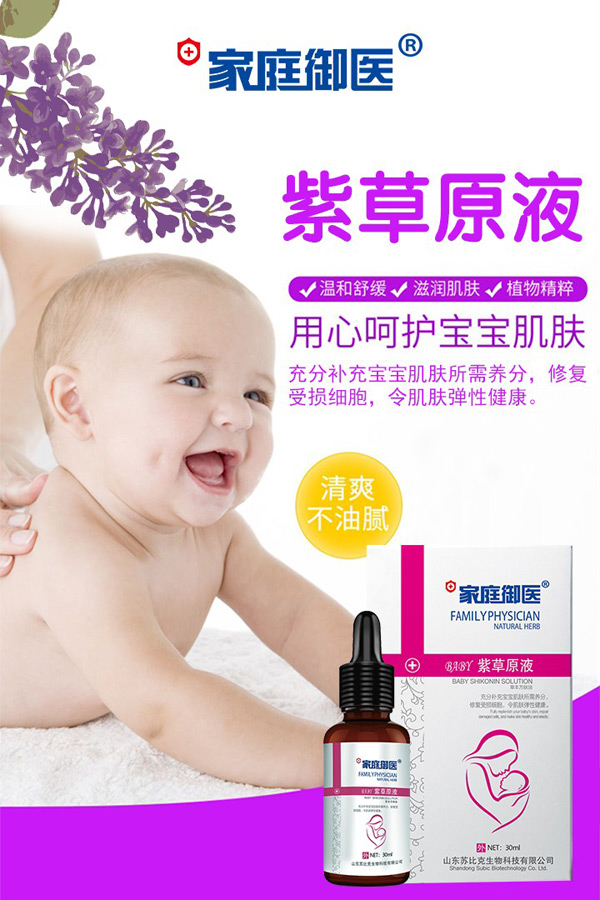 家庭御醫(yī)紫草原液根據(jù)嬌嫩肌膚研制,性質(zhì)溫和,純中草藥配方,甄選上好的軟紫草-新疆軟紫草作為主要成分,萃取天然植物原液精華,確保產(chǎn)品安全無副作用,給寶寶更周全的植物防護。