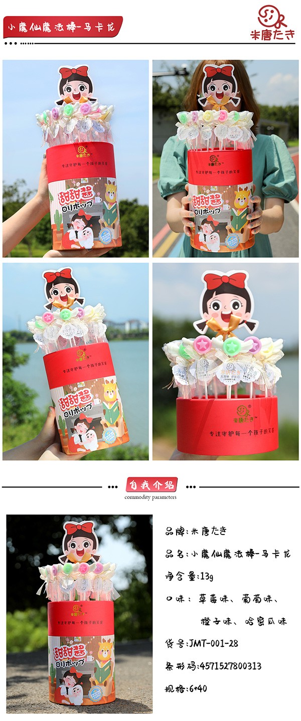 米唐たき品牌,主營棒棒糖,旗下有多個系列產(chǎn)品,如元氣花花棒棒糖、風(fēng)車王國波板糖、貓爪魔法棒棒糖、小魔仙魔法棒棒糖、海洋小分隊棒棒糖、動物派對棒棒糖、魔法棒棒糖等等。