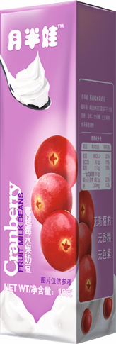 2.月半娃水果奶豆包含了草莓水果奶豆、蔓越莓水果奶豆、櫻桃水果奶豆和香蕉水果奶豆四款產(chǎn)品,四種不同口味。