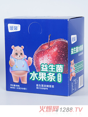 暖馨益生菌水果條系列,有草莓味、藍(lán)莓味、蘋果味、香橙味,優(yōu)選鮮果投入,真材實料有果肉。水果果汁+益生菌,營養(yǎng)豐富味道好。