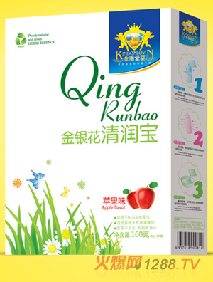 金盾愛嬰草本清潤寶針對嬰幼兒普遍存在的上火、體質(zhì)差的現(xiàn)象,根據(jù)傳統(tǒng)中醫(yī)理論,選取傳統(tǒng)中醫(yī)中用來清除內(nèi)火的天然植物原料蓮心、金銀花、山楂、麥芽、菊花為主要原料,結(jié)合現(xiàn)代生物科技, 特別添加牛磺酸 、DHA、雙歧因子、蜂蜜、雞內(nèi)金研制出了新一代奶粉伴侶,科學(xué)預(yù)防上火、厭食。