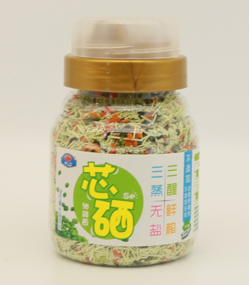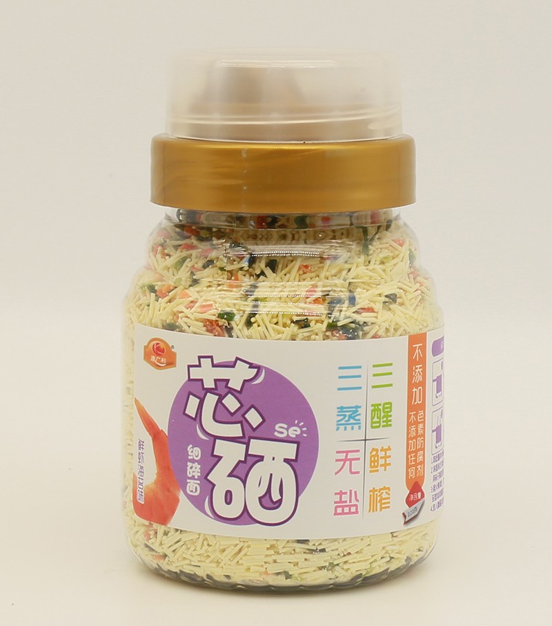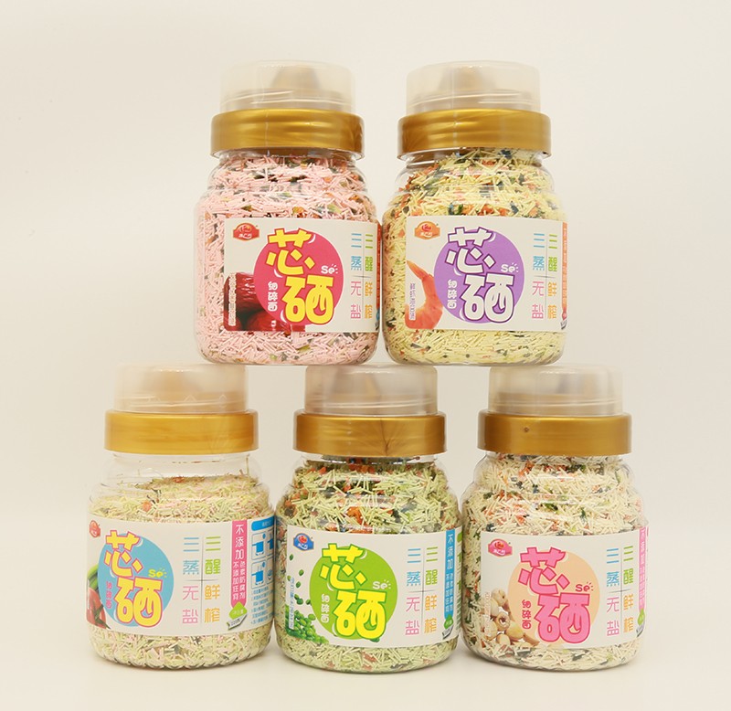 康廣利芯硒細(xì)碎面,采用麥芯粉、鮮榨蔬菜汁等優(yōu)質(zhì)食材制作,經(jīng)獨(dú)特用心調(diào)制,淡淡的雜糧和蔬菜香味進(jìn)入面條中,綠豆薏米菠菜味、五谷紅棗山藥味、鮮蝦海苔味、百合蓮子口味、多彩口味,多種不同口味,讓寶寶的味蕾開始旅行。三醒三蒸,無鹽鮮榨,不含色素、防腐劑、增白劑,健康安全。易煮不渾湯,造型獨(dú)特,面體爽滑,口感美味。罐裝設(shè)計(jì),易于存儲(chǔ),干凈衛(wèi)生,食用方便。