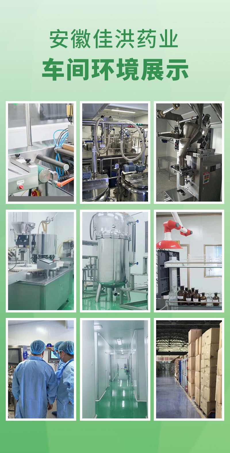 安徽佳洪健康產(chǎn)業(yè)有限公司位于全球最大的中藥材集散中心安徽亳州市,占地4600平方的現(xiàn)代化生產(chǎn)基地,其中生產(chǎn)車間占地2300平。倉(cāng)儲(chǔ)面積2300平。國(guó)際先進(jìn)的生產(chǎn)檢測(cè)設(shè)備,固體制劑、口服液、軟膠囊、保健用品、消毒用品、醫(yī)療器械、代用茶等生產(chǎn)車間,可生產(chǎn)加工片劑、硬膠囊劑、軟膠囊劑、顆粒劑、粉劑、凝膠等劑型,提供最完善的一站式OEM加工服務(wù)。獨(dú)立的工藝布局走向,能夠?qū)崿F(xiàn)多品種、多劑型的同時(shí)聯(lián)動(dòng)生產(chǎn)和單一品種的獨(dú)立生產(chǎn)。創(chuàng)造獨(dú)立的品牌及品牌OEM基地。