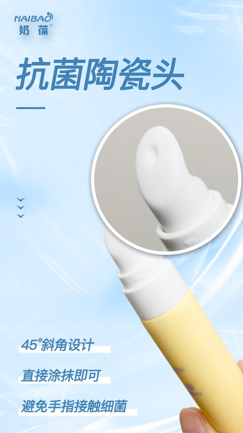 奶葆嬰兒唇周膏,特別添加紅沒(méi)藥醇,蜂蠟等成分,快速成膜,保濕隔離,雙管齊下,專(zhuān)注舒緩修護(hù)唇周不適?咕沾深^,45°斜角設(shè)計(jì),直接涂抹即可,避免手指接觸細(xì)菌,安心使用。適用于唇周、下巴泛紅不適,出牙期流口水等,滋潤(rùn)、舒緩、防護(hù),多重呵護(hù),家有口水娃必備。