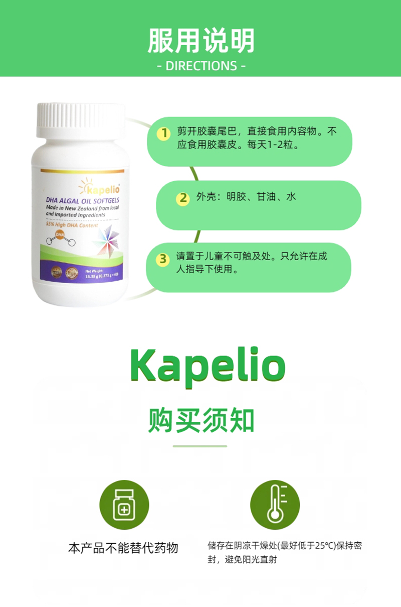 每粒含有約150毫克DHA,DHA藻油的日攝入量≤300mg/天