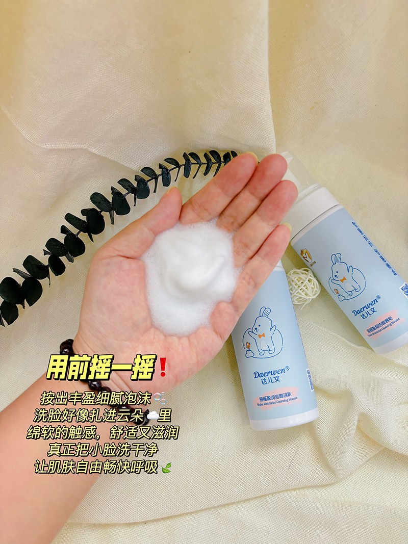 達兒文搖搖盈潤潔面慕斯,潔面新體驗,敏感肌友好。綿密泡沫,去污滋養(yǎng),兒童專用,無淚配方。