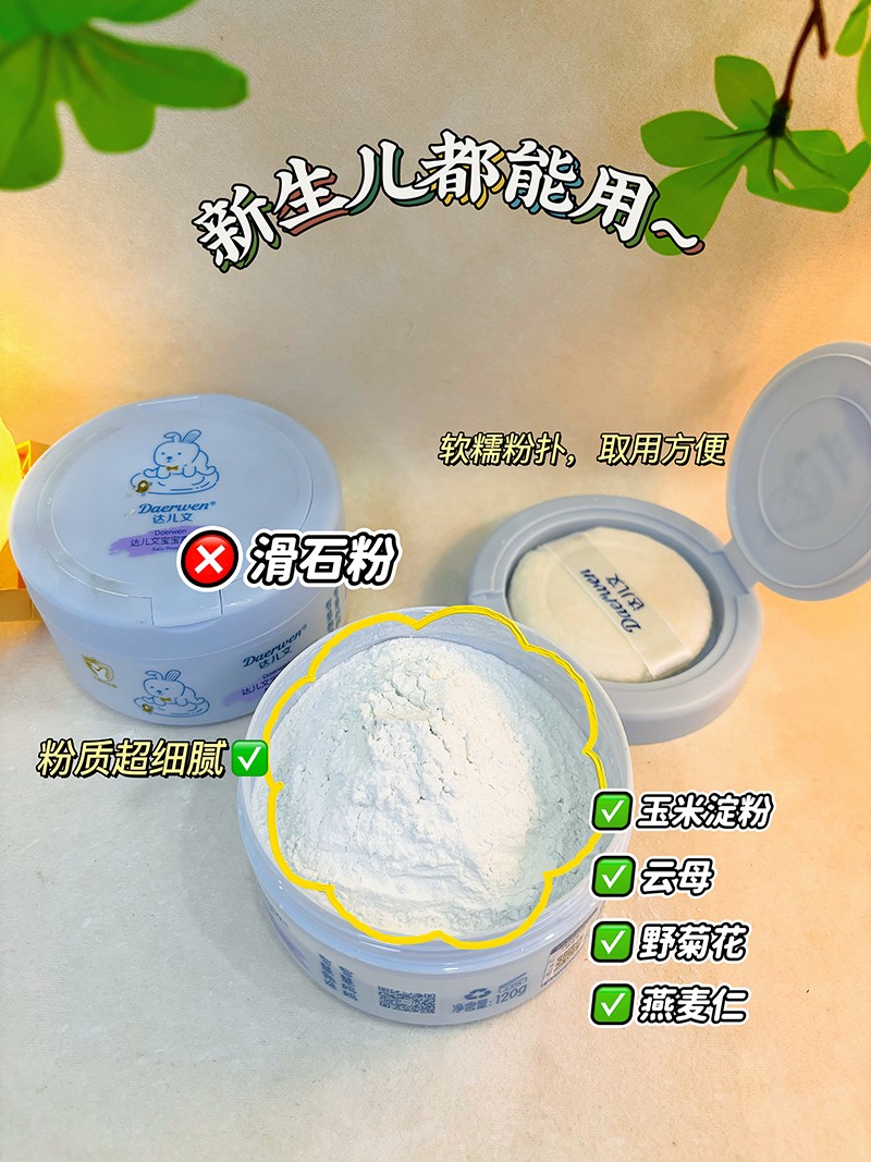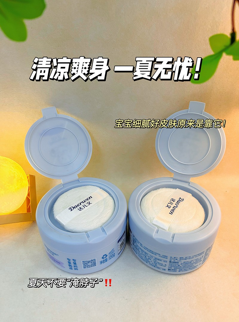 達兒文寶寶爽身粉,粉質細膩,不溶于水,清涼干爽。爽身防痱,有效隔離汗液。
