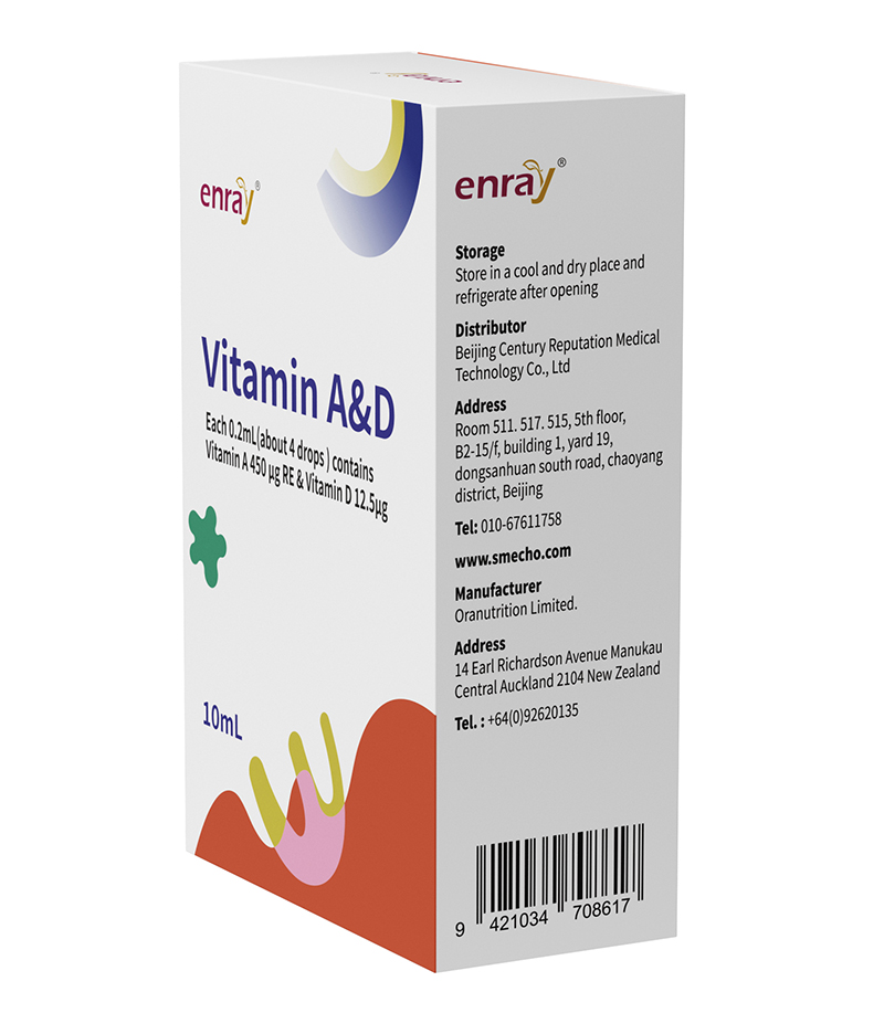本產(chǎn)品每0.2毫升(約4滴)含維生素A 450μg RE(1500 IU),含維生素D 12.5μg(500 IU)。