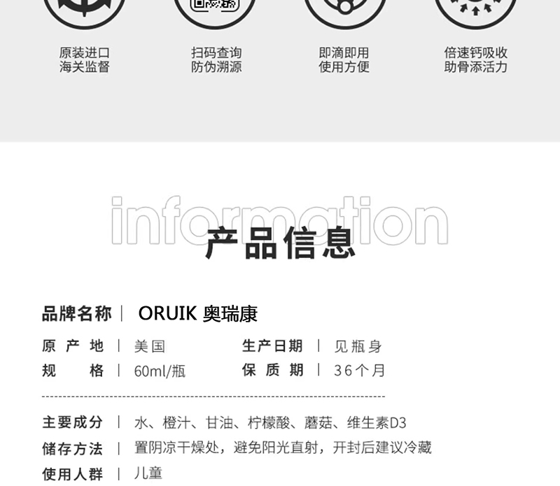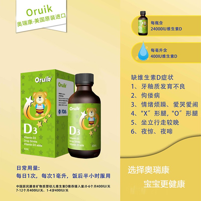 Oruik奧瑞康作為美國(guó)品牌,一直致力于為消費(fèi)者提供高品質(zhì)的健康產(chǎn)品。此次推出的維生素AD滴液,是美國(guó)原裝進(jìn)口,品質(zhì)卓越。該產(chǎn)品專為兒童設(shè)計(jì),以胡蘿卜蘑菇為主要成分來(lái)源,口感佳,易被兒童接受。
