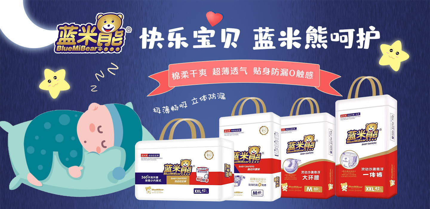 福建藍(lán)米熊紙業(yè)有限公司是一家集研發(fā)、設(shè)計(jì)、生產(chǎn)、銷(xiāo)售、服務(wù)為一體的大型專(zhuān)業(yè)化嬰幼用品企業(yè)。公司采用國(guó)際最先進(jìn)的全自動(dòng)伺服頂級(jí)生產(chǎn)設(shè)備,全控管理流程;企業(yè)同時(shí)通過(guò)了ISO9001:2008質(zhì)量體系認(rèn)證和ISO14001:2004環(huán)境體系認(rèn)證。藍(lán)米熊紙尿褲采用優(yōu)質(zhì)原材料,從細(xì)節(jié)出發(fā),全方位呵護(hù)寶寶健康,以“生產(chǎn)安全舒適的尿褲”為宗旨,堅(jiān)持“誠(chéng)信經(jīng)營(yíng),客戶(hù)為先”的理念,迅速占領(lǐng)各地市場(chǎng)。