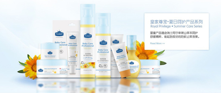 “皇家嬰童” 【Excelamb】由瑞士皇家藥業(yè)母嬰用品有限公司榮譽(yù)授權(quán)出品,由瑞士皇家藥業(yè)特別提供原料精煉萃取技術(shù)及天然配方支持;公司擁有先進(jìn)的專業(yè)研發(fā)團(tuán)隊,團(tuán)隊精英專注于瑞士阿爾卑斯山高山草本植物精華的精煉研制技術(shù),遵循寶寶發(fā)育期的肌膚特點(diǎn)和不同產(chǎn)品用途的具體差異,研制出有效的天然配方,更有效呵護(hù)寶寶幼嫩身體,給寶寶科學(xué)、細(xì)致周到的呵護(hù),讓每一位寶寶都能尊享皇家般的貴族品質(zhì)。