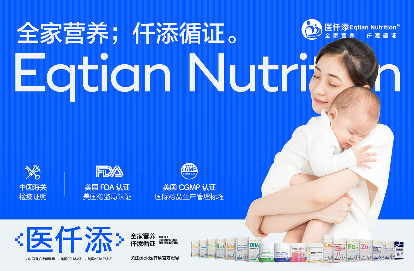 Eqtian Nutrition醫(yī)仟添系列產(chǎn)品均來自美國EQTIAN NUTRITION INC.企業(yè)生產(chǎn),堅(jiān)持采用天然原材料加工 ,嚴(yán)格把關(guān)每一道生產(chǎn)過程。產(chǎn)品都通過了美國權(quán)威FDA認(rèn)證,按照美國cGMP(國際藥品生產(chǎn)管理標(biāo)準(zhǔn))條例生產(chǎn)。醫(yī)仟添自成立以來,一直致力于對營養(yǎng)學(xué)與健康食品臨床研究與開發(fā)方面的努力探索,以科學(xué)的方式為千萬家庭傳播愛與健康,這是企業(yè)品牌文化使然,健康婦幼,營養(yǎng)先行。讓醫(yī)仟添守護(hù)每一個(gè)中國家庭的營養(yǎng)健康。愛之有道,計(jì)之深遠(yuǎn)——為孩子,也為自己!
