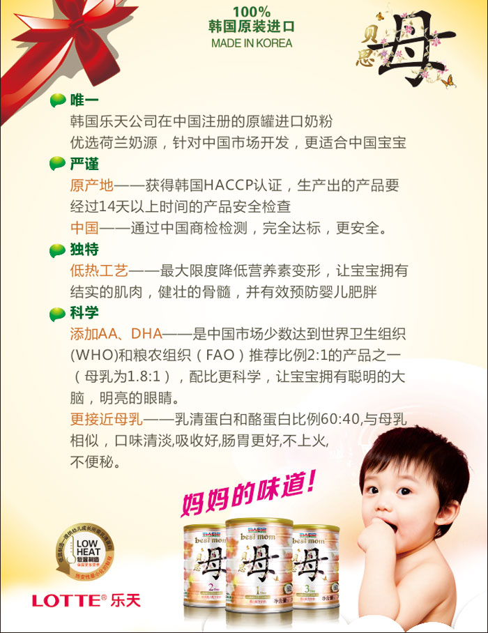2、貝思母(韓國(guó)樂(lè)天旗下品牌)面向全國(guó)誠(chéng)招代理商,歡迎加盟!如果您沒(méi)有雄厚的資金實(shí)力、沒(méi)有完善的分銷(xiāo)渠道、沒(méi)有優(yōu)化 的營(yíng)銷(xiāo)渠道、沒(méi)有通達(dá)的人脈網(wǎng)絡(luò),只要您有共同努力的決心、創(chuàng)建事業(yè)的激情、永不言棄的堅(jiān)持、 具備服務(wù)于大眾健康事業(yè)的 意愿,您就是貝思母永遠(yuǎn)值得信賴(lài)的朋友!