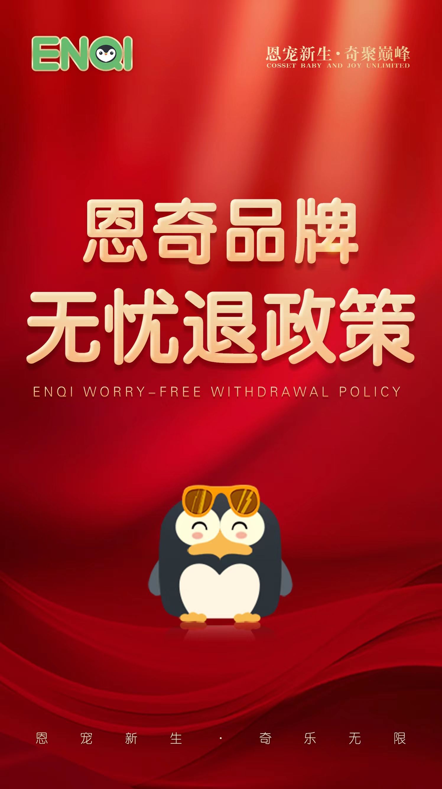 打款當(dāng)月退代理,剩余貨款全額退!如果產(chǎn)品下單,收到貨了,但是又不想賣了,怎么辦?依然全額退!是的,你沒有聽錯(cuò),這就是恩奇的無(wú)憂退政策,驚不驚喜!