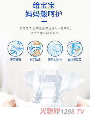 詮芯愛紙尿褲富含瞬吸因子,加倍吸濕,防止尿液回滲,減少尿褲更換頻率,讓bao--bao屁屁更干爽,更健康;360°智慧腰圍技術(shù),可有效防止側(cè)漏,彈性提升2倍,確保bao--bao貼身舒適,柔彈護腿,穿戴簡單;魔術(shù)腰貼,粘貼牢固,隨身呵護,讓孩子活動更加自如。