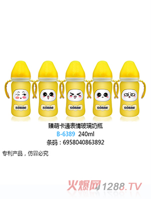 小太陽臻萌卡通表情玻璃奶瓶,廣州森洪嬰幼兒用品有限公司旗下主打系列產(chǎn)品之一,與傳統(tǒng)玻璃奶瓶不同的是它是多彩的,明亮的黃、柔和的粉、大氣的藍(lán)應(yīng)有盡有,更有多種可愛表情躍然于上,萌趣十足,十分吸人眼球!