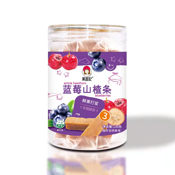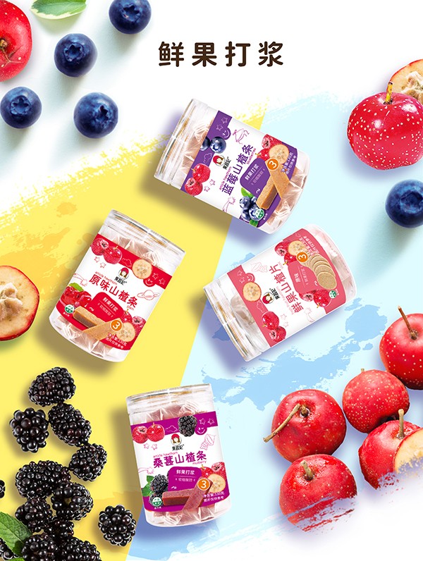 果蔬妃原汁山楂,原料十分簡(jiǎn)單,將新鮮山楂蒸熟后去籽,然后添加鮮果打漿的蘋(píng)果、藍(lán)莓和桑葚等,烘烤成型后切塊,獨(dú)立包裝保持水分,最終得到幫助寶寶開(kāi)胃消食、軟糯可口的果蔬山楂!