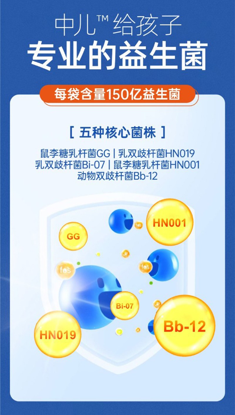 [配料表]抗性糊精、赤蘚糖醇、低聚果糖、香蕉原粉、鼠李糖乳桿菌GG、乳酸菌復配粉(鼠李糖乳桿菌GG、乳雙歧桿菌HN019、乳雙歧桿菌Bi-07、抗性糊精、鼠李糖乳桿菌HNO01、動物雙歧桿菌Bb-12)、維生素C