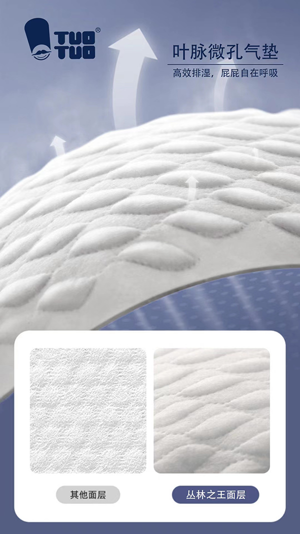 TUOTUO紙尿褲采用葉脈微孔氣墊技術(shù),高效排濕,保持寶寶屁屁干爽舒適。品牌始終堅持以創(chuàng)新科技和嚴(yán)格品控為核心,確保每一片紙尿褲都符合高標(biāo)準(zhǔn),為寶寶提供更安心的呵護。