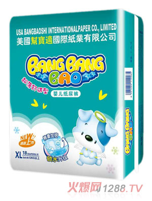“美國幫寶適國際紙業(yè)有限公司”是一家專業(yè)生產(chǎn)與銷售嬰兒紙尿褲的國際知名企業(yè),“BANGBANGBAO”是該企業(yè)旗下專為中國bao--bao打造的一個(gè)全新紙尿褲品牌,以薄巧、舒適、柔棉為理念,并迎合中國消費(fèi)者的使用習(xí)慣,新增超級(jí)薄紙尿片產(chǎn)品,更受中國bao--bao的歡迎。