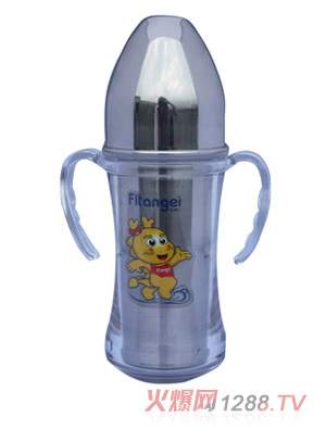 安箕兒卡通龍不銹鋼奶瓶,專業(yè)的奶瓶,不銹鋼材質(zhì),可以長久反復使用,能伴隨bao--bao健康成長。