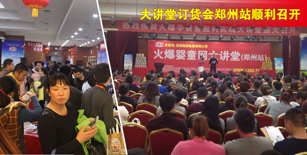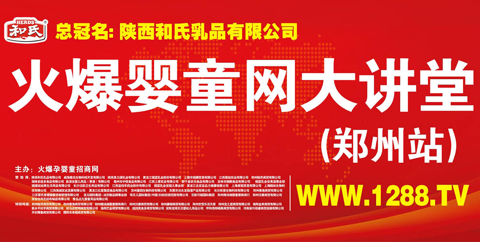 3月12日,由火爆嬰童網主辦,陜西和氏乳品有限公司冠名的"火爆網大講堂第十三屆全國巡回訂貨會",挺進中原腹地,在鄭州大酒店盛大開啟!現場32家品牌廠商參會,四位嬰童界知名講師蒞臨指導,以及1200余名經銷商、代理商朋友歡聚盛會。