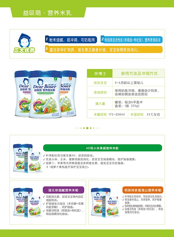 具有20年傳奇科技的中國嬰幼兒營養(yǎng)品工廠-美亨利樂,一直以專注于嬰幼兒營養(yǎng)輔食聞名,并根據(jù)市場反饋需求不斷升級自身產(chǎn)品,為中國嬰幼兒健康成長帶來更多優(yōu)秀產(chǎn)品!癉ear Boser(中譯:親博士)”正是在美亨利樂強大的技術(shù)及產(chǎn)品經(jīng)驗基礎(chǔ)上,為開拓新生代嬰幼兒的個性化成長領(lǐng)域而研發(fā)出來的優(yōu)秀品牌。