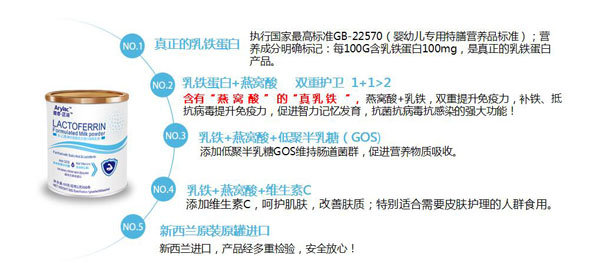 (新西蘭原裝進(jìn)口)雅!に{(lán)湖N-乙酰神經(jīng)氨酸乳鐵蛋白調(diào)制乳粉產(chǎn)品展示