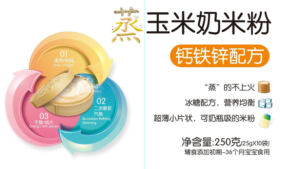 蒸汽滾筒干燥法:通過蒸汽滾筒工藝,鎖住米香和營養(yǎng),減少了寶寶上火現象;