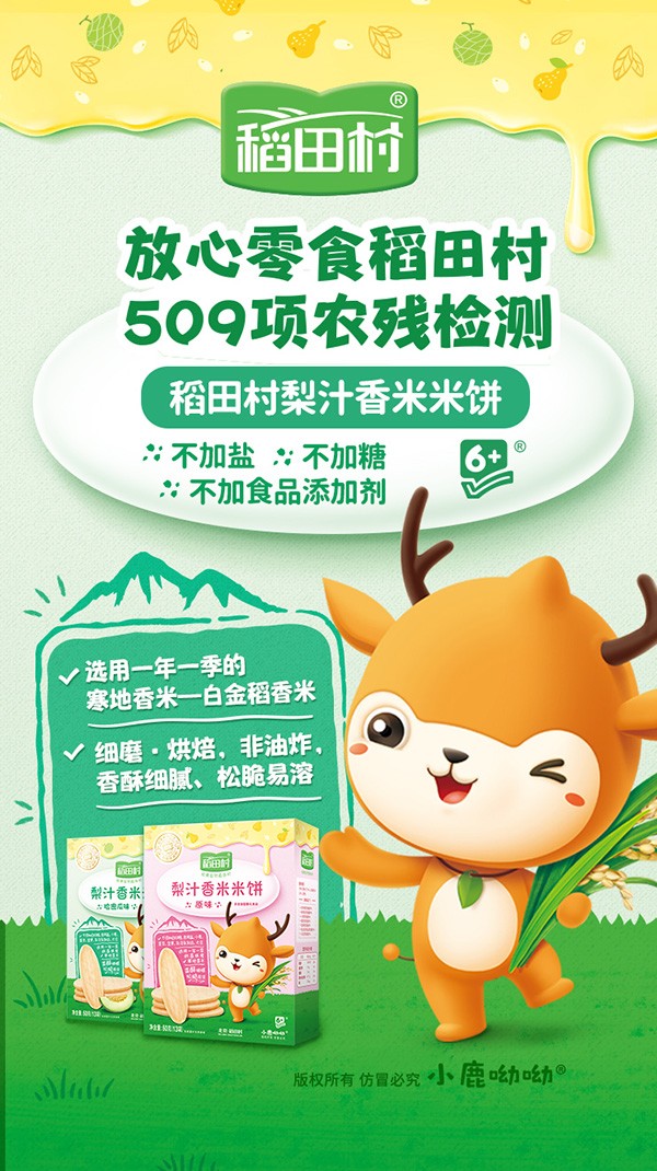 稻田村-專業(yè)的寶寶輔食、零食品牌,本著為消費(fèi)者負(fù)責(zé)的態(tài)度,品牌聯(lián)合高校、科研機(jī)構(gòu)和食品出口企業(yè)從事研發(fā)、培育工作,并且自成一套嚴(yán)謹(jǐn)科學(xué)的品質(zhì)管控體系,用匠心堅(jiān)守品質(zhì),每個(gè)品類產(chǎn)品都是行業(yè)內(nèi)的佼佼者。