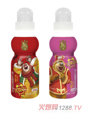 “熊出沒”兒童乳酸菌產(chǎn)品,配方,國家標準,好喝才是硬道理,好喝當然會重復(fù)購買。精選進口無抗奶源和保加利亞菌種,綠色健康,0脂肪的設(shè)計,產(chǎn)品不僅滿足不同兒童的身體需要,更是減少了現(xiàn)代兒童的肥胖壓力。原料安全有保障,產(chǎn)品質(zhì)量更放心。創(chuàng)新的奶嘴瓶口設(shè)計,產(chǎn)品處于熱點風口,加上《熊出沒》品牌的強大號召力,實力引爆終端市場動銷!