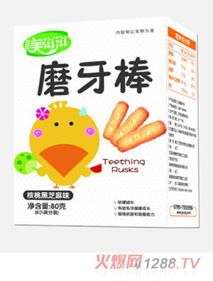 美滋滋磨牙棒為了迎合bao--bao味蕾需求,特別研發(fā)了兩種口味,讓bao--bao吃了還想吃,美滋滋磨牙棒有牛奶味、核桃黑芝麻味,兩種口味任意挑選,口味各異,營養(yǎng)加倍。美滋滋磨牙棒,營養(yǎng)又健康,讓bao--bao磨牙更方便!