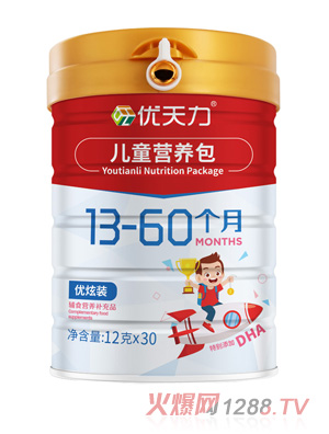 優(yōu)天力營養(yǎng)包系列有優(yōu)天力嬰幼兒營養(yǎng)包優(yōu)炫裝6-12個月、優(yōu)天力嬰幼兒營養(yǎng)包優(yōu)淳裝6-12個月、優(yōu)天力兒童營養(yǎng)包優(yōu)炫裝13-60個月、優(yōu)天力兒童營養(yǎng)包優(yōu)淳裝13-60個月、優(yōu)天力孕婦產(chǎn)婦營養(yǎng)包共五款單品,一袋營養(yǎng),兩代健康。