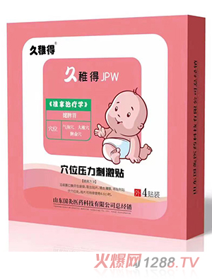 久稚得穴位壓力刺激貼聯(lián)手火爆嬰童網(wǎng),面向全國(guó)招商,勢(shì)必將品牌與產(chǎn)品在國(guó)內(nèi)市場(chǎng)上的影響力提升一個(gè)新階段。讓全國(guó)的每一位寶寶都能用上優(yōu)質(zhì)好品,而且,這款久稚得穴位壓力刺激貼一上市就造代理商瘋搶?zhuān)F(xiàn)正面向全國(guó)招商中,趕緊下手吧!