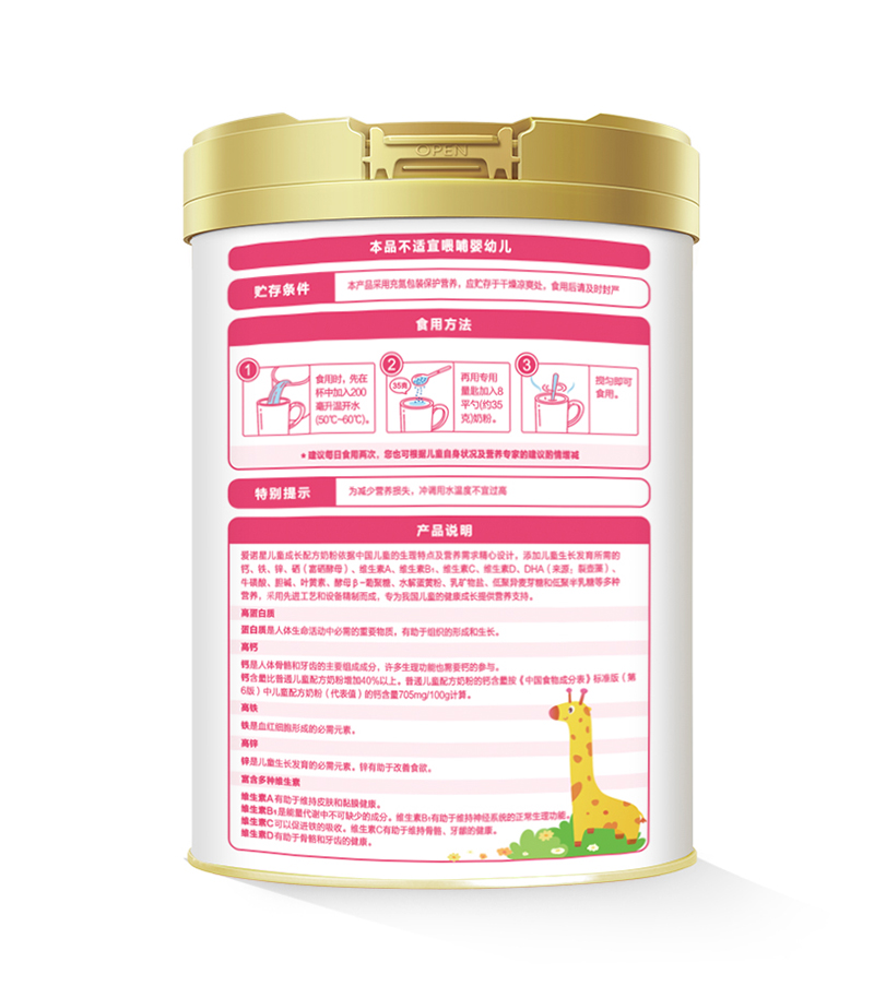 產(chǎn)品名稱:愛諾星Pro+兒童成長配方奶粉