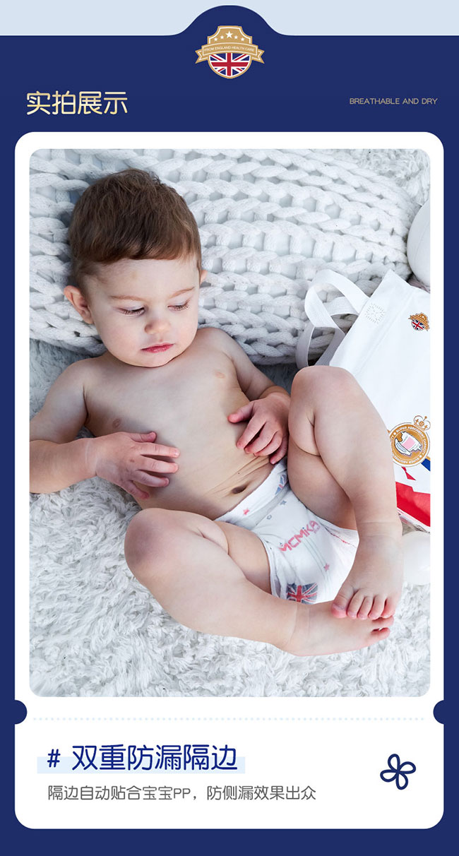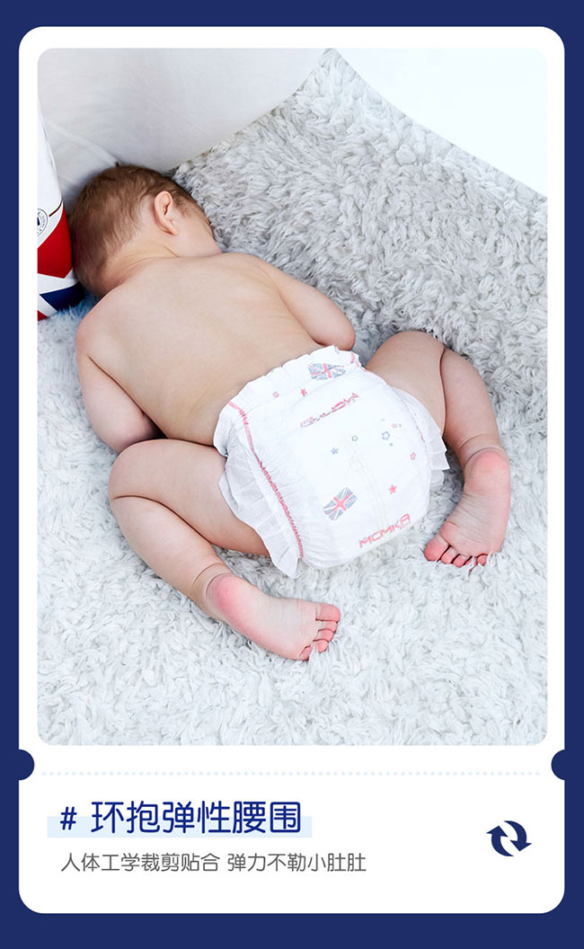 它采用英國技術(shù),熱風親膚無紡布面層呵護寶寶嬌嫩肌膚。僅 0.1cm 厚,如一枚硬幣,輕盈貼身,給寶寶裸感體驗,助力自由活動。添加金縷梅植萃精華,含柔敏因子,舒緩肌膚,遠離紅屁屁。