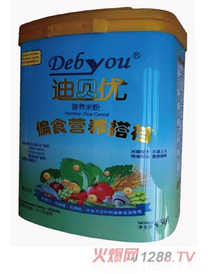迪貝優(yōu)米粉是美國迪貝優(yōu)國際營養(yǎng)品有限公司主營產(chǎn)品,本產(chǎn)品營養(yǎng)健康,特別添加有DHA、ARA等多種營養(yǎng)元素,是米粉的很好的選擇,F(xiàn)在迪貝優(yōu)米粉品牌火爆招商,歡迎來電來函咨詢洽談。